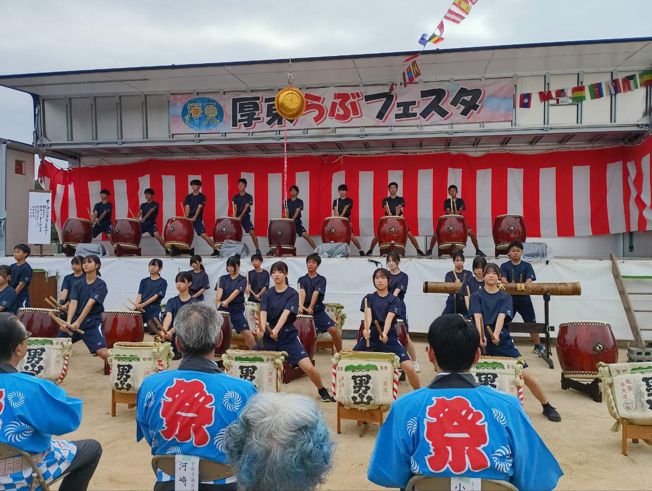 第44回厚東ラブフェスタが盛大に開催されました。オープニングの厚東川中学校生徒さんの夢太鼓の演奏は力強く迫力がありました。会場内は多くの出し物や作品が展示され馬場良治さんの絵画も展示してありました。さすが歴史と文化の里厚東と感心しました。