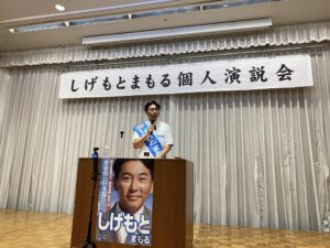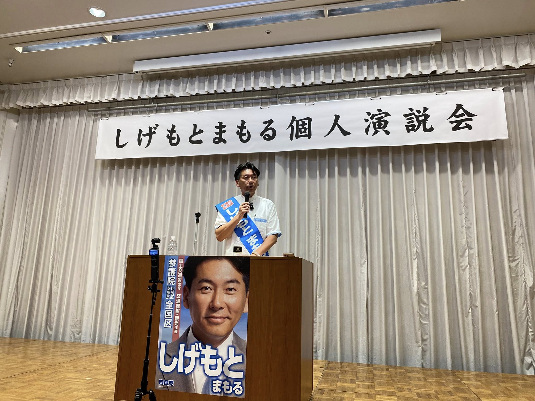 しげもとまもる候補は国交省のご出身で運輸や観光政策にも明るく素晴らしい演説でした。しげもとまもる候補の必勝をお祈り申し上げます。