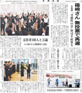 宇部日報に宇部市長選挙の記事が掲載されています。篠﨑市長、再選おめでとうございます。