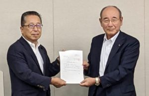 山口県商工会議所連合会から「令和4年度要望書」を手交されました。1、「地域医療」「地域防災」の体制整備による安全安心なまちづくりについて2、少子化対策の充実・強化と地方創生を担う人材の確保について3、国道2号線富海拡幅工事の早期完工と台道地区4車線化の事業化4、宇部港湾整備事業の促進について5、東部産業振興センターの整備について他29項目の要望がありました。