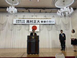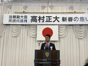 法務副大臣衆議院議員高村正大先生の新春の集いが国際ホテル宇部で開催されました。会場は大勢の支援者の熱気に溢れ高村先生への期待の高さが伺えました。