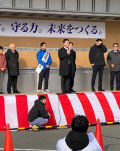 山口県知事選挙村岡つぐまさ候補の出陣式が山口市の維新百年記念公園で行われ、村岡つぐまさ候補から力強い立候補の表明がありました。厳寒の中、大勢の皆様が集まって頂き心から感謝申し上げます。17日間ご支援を頂きます様お願い申し上げます。