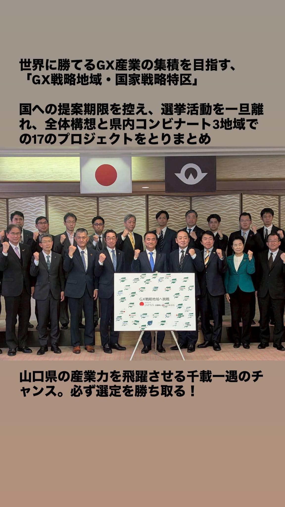 山口県経済の推進力であるコンビナートの脱炭素化は、将来的に持続可能なコンビナートに転換する起爆剤です。その為にGX特区の指定は欠かせません。官民一体となって取り組んで頂きます様お願い申し上げます。